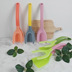 Espátula y volteador de huevos de silicona de grado alimenticio 2 en 1, utensilio de cocina, pinzas para alimentos para sujetar panqueques, tostadas francesas y tortillas